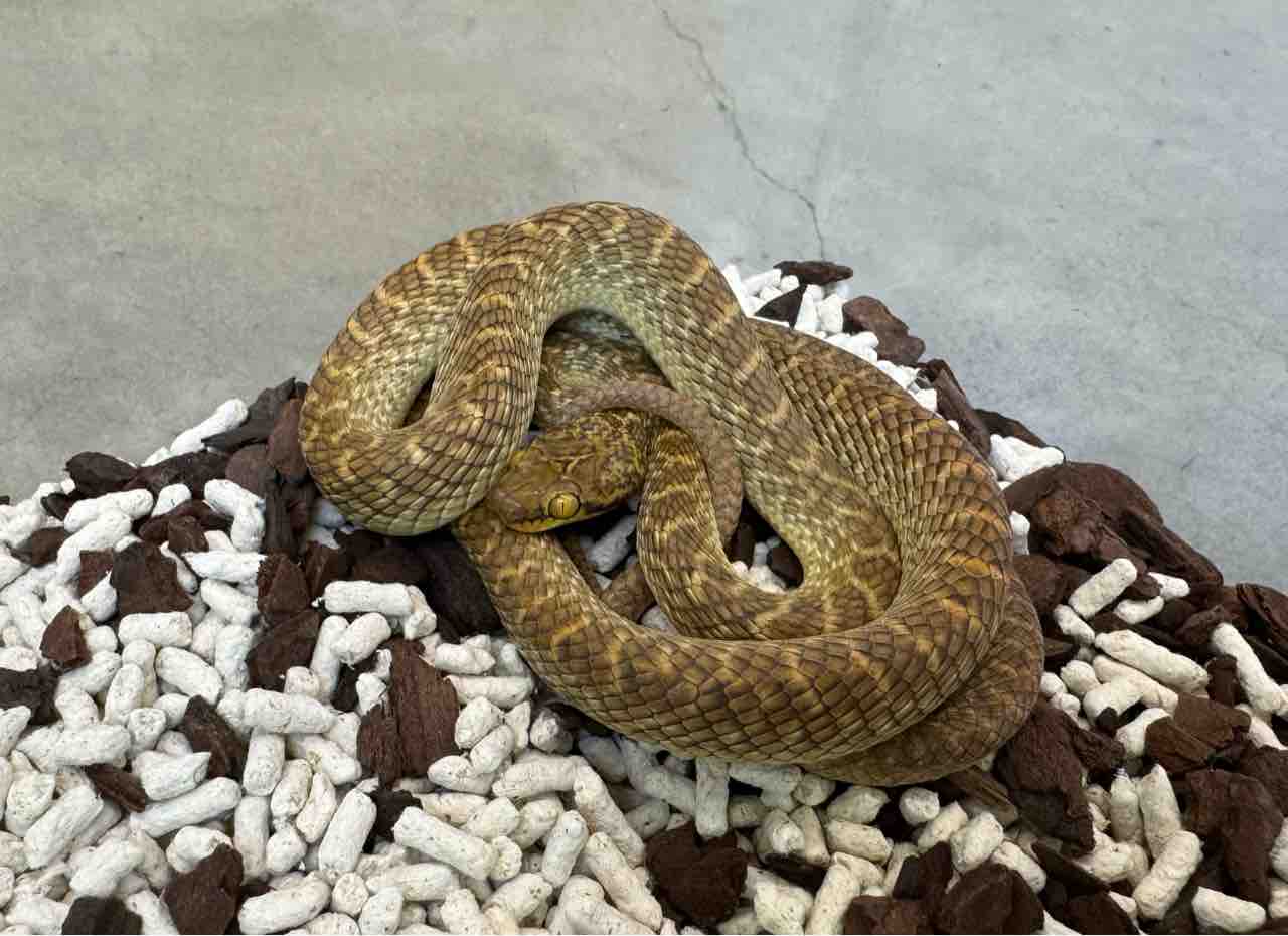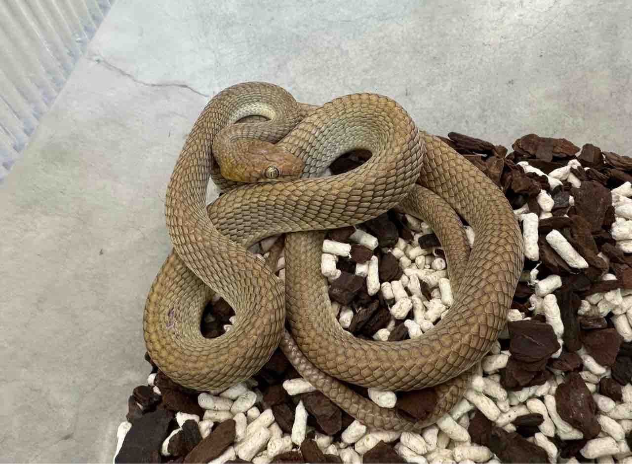 模様のある個体と消失している個体の2タイプを選んできました!ギョロッと猫目な目つきが可愛らしいキャットアイスネークでその愛らしさと不気味さを兼ね備えた容姿からエジプト便ヘビの中でも高い人気を誇ります。食性として主に爬虫類を好みますが大抵の個体が冷凍ヤモリは簡単に食べてくれますので飼い込めばそのままマウスへの移行も比較的容易です。