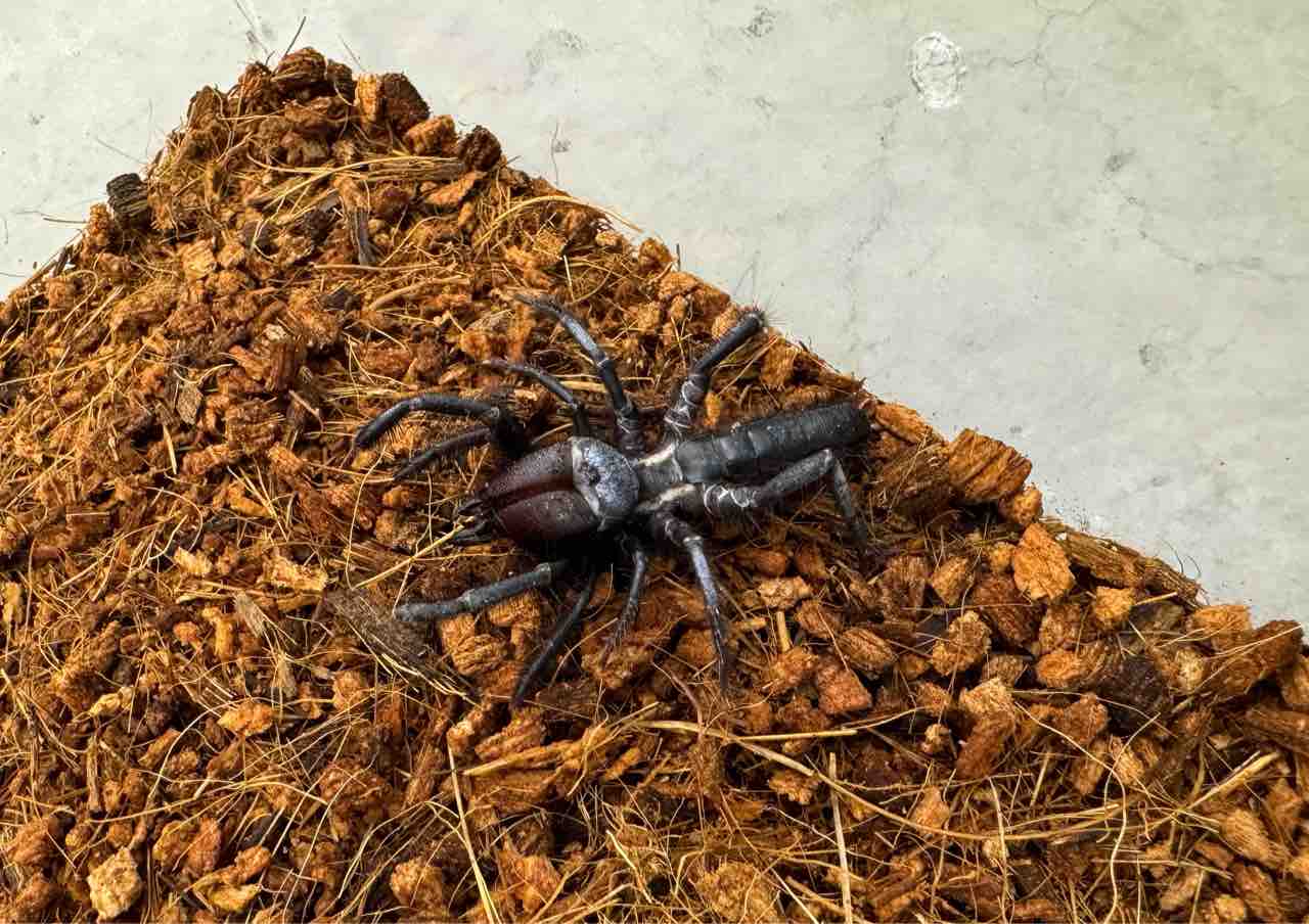 グロテスクでカッコいい漆黒のヒヨケムシ!性格もアグレッシブルで餌を捕まえるとゴリゴリ食していきます。残り1匹!♂個体です。