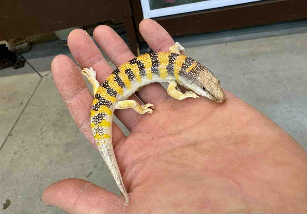 モロッコ原産のアルジェリアスキンクをスタイリッシュにした様なややスレンダーな体型。灰色の地色に色濃くオレンジスポットが入る派手なエジプト産スキンクで人気も高いです!丈夫で強健な種類で扱いやすい良いトカゲ。お値段もお手頃です。残り2匹!
